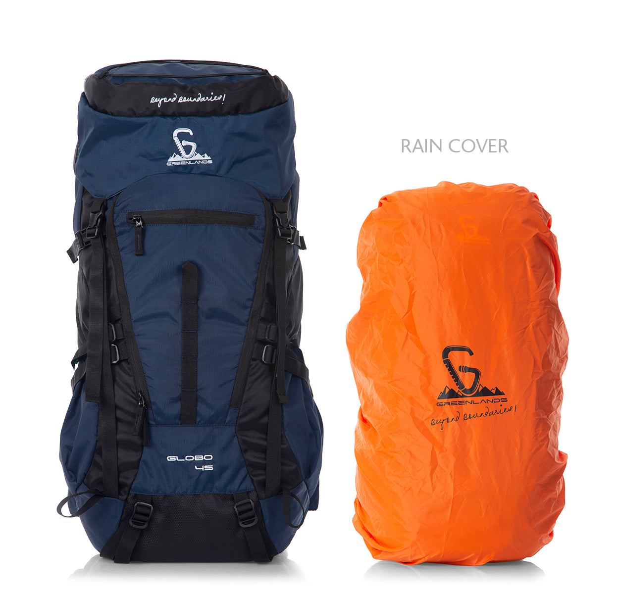 Get set for your next adventure with the Greenlands "Globo" Rucksack! This unisex design 45-liter backpack is perfect for hiking, trekking, camping, and as airplane cabin baggage. It features a U-shaped compartment, bungee cord, and hood pocket for easy access to essentials. The wireframe structure and padded shoulder straps offer comfort, and the adjustable sternum straps and waist belt ensure a secure fit. Other features include a front pocket, compression straps, and umbrella/bottle pockets for organization. Plus, it comes with a Floro high-visibility rain cover for protection against rain and dust. Order now and hit the trail with confidence!